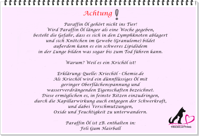 - Wichtig KEIN Paraffin Öl geben!